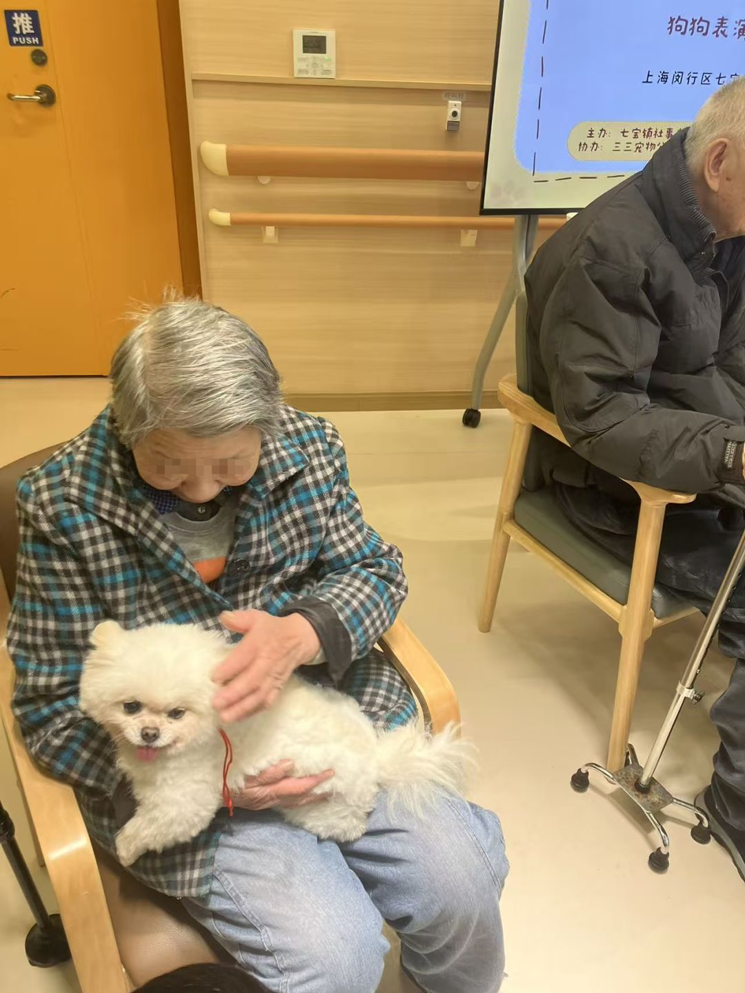 “这引发了我们院方的关注,在研究了相关案例后,我们考虑是不是可以进一步找到更好的方案延缓认知障碍的发生,经过七宝镇社事办的协调下,我们找到了三三宠物公益服务中心。”吴贇说,这次活动中,疗愈犬不论是帮助老人解闷,又或是对认知障碍老人的疗愈,效果都非常不错。
