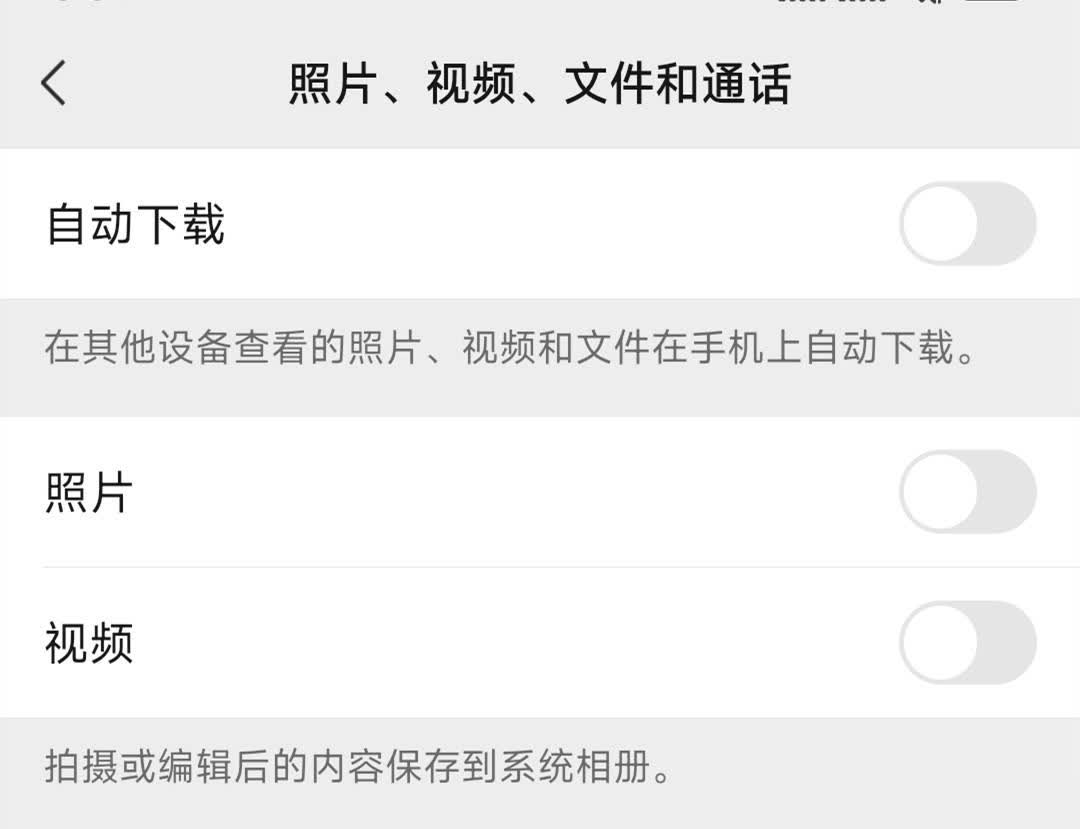 - 操作路径:微信→设置→通用→照片/视频/文件→关闭自动下载