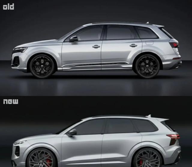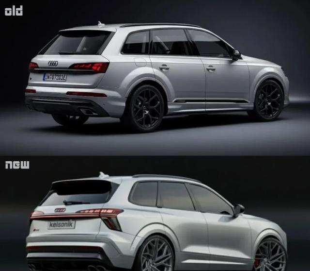 车身侧面整体看起来变得更加凌厉了一些,最显眼的变化就是门把手换成了隐藏式设计。鉴于目前对隐藏式门把手的非议,不确定量产的时候奥迪是否还会采用。后视镜以及车顶行李架依旧进行了黑化处理,侧裙处也进行了重新设计。轮毂预计会提供一系列全新样式,目前渲染图上的造型极为夸张。