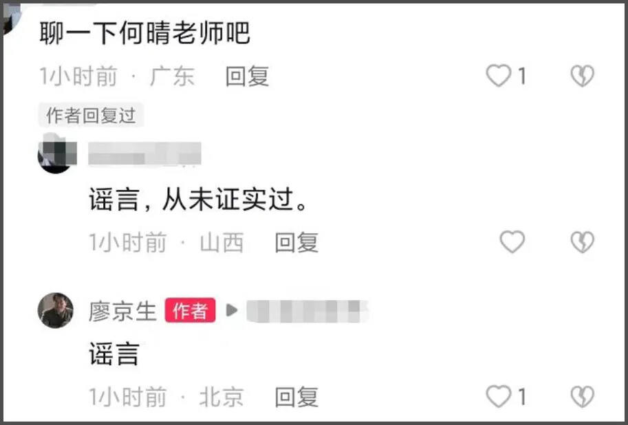 据爆料,何晴因病退圈之后,还曾在2022年复出,与廖京生合作了电视剧《爱我中华》。两人后来还传出恋情绯闻,不过被廖京生多次否认,当年发文称“廖、何不是一家。谣言传得太久了。”