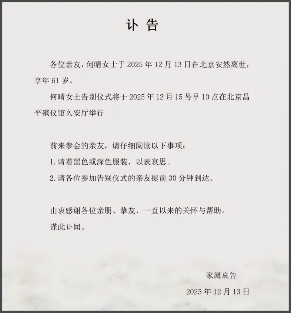 著名女演员何晴去世,年仅61岁,圈内好友纷纷悼念。据悉,何晴抗癌多年,曾被曝患脑瘤,但后面做手术后好转不少谷锦网,最后一次露面还是好友曝光聚会照片,看着精神不错。